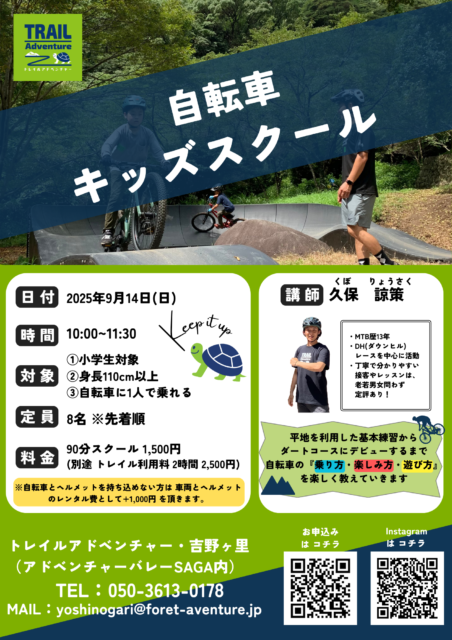 基本的な自転車の乗り方から安全な止まり方をレクチャーし、初めてのオフロード体験をお手伝いします!